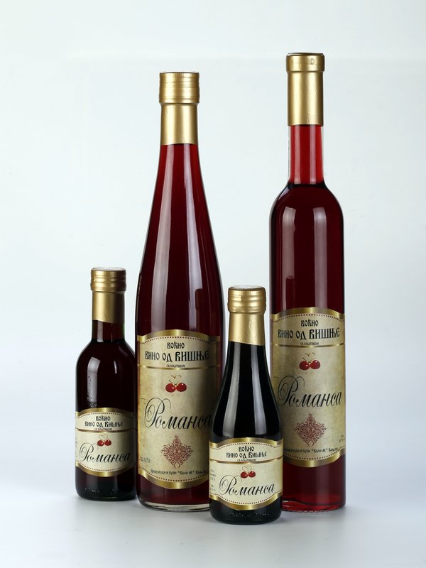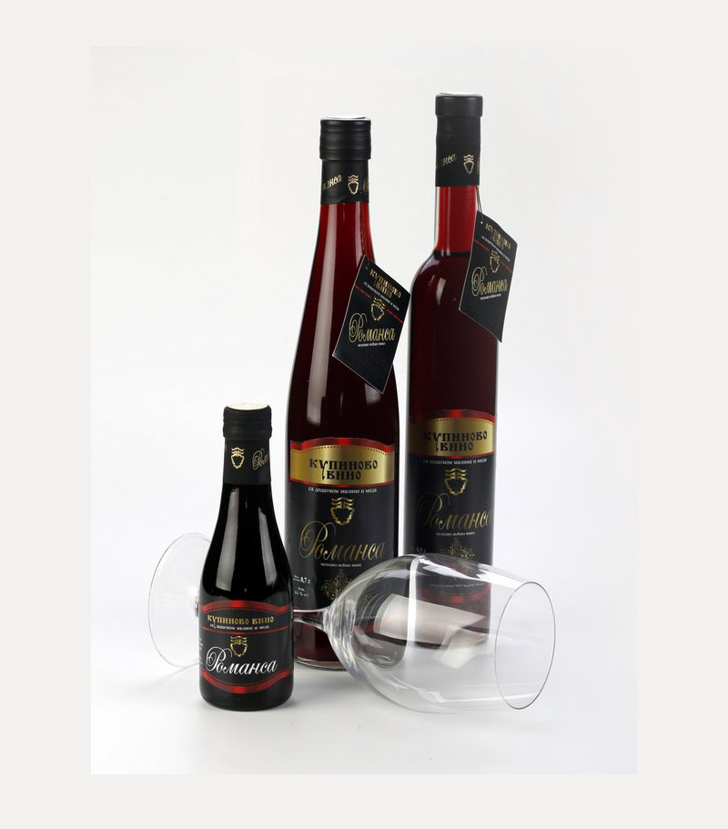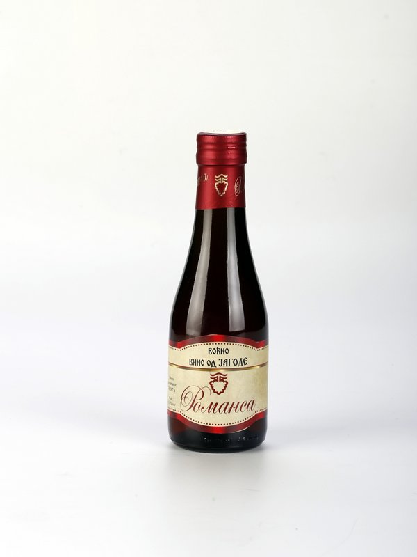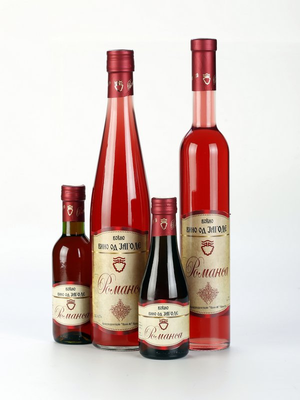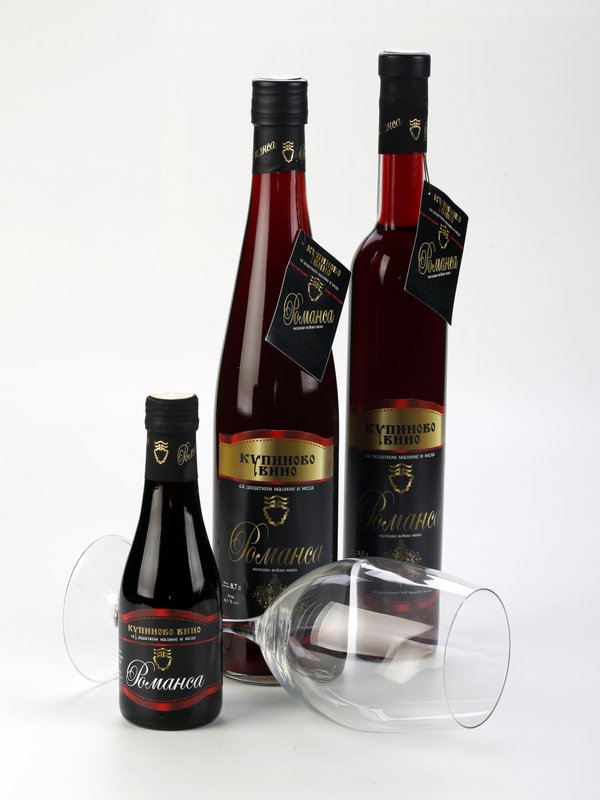 Паковање и пласман Романса купиновог вина са додатком малине и меда и Романса воћних вина од јагоде, малине и вишње, врши се у стакленој амбалажи од 0,187л, 0,5л и 0,7л. Паковање и пласман Романса купиновог вина, врши се у амбалажи од 0,2л, и 0,75л, а Романса аперитивно купиново вино са додатком малине и меда у стакленој амбалажи од 0,187л, и 0,75л. Романса воћна вина у свом саставу садрже 6,1% алкохола, док Романса купиново вино и Романса аперитивно купиново вино са додатком малине и меда у свом саставу садрже 9% алкохола. Водећи рачуна о уштеди птрошача,.